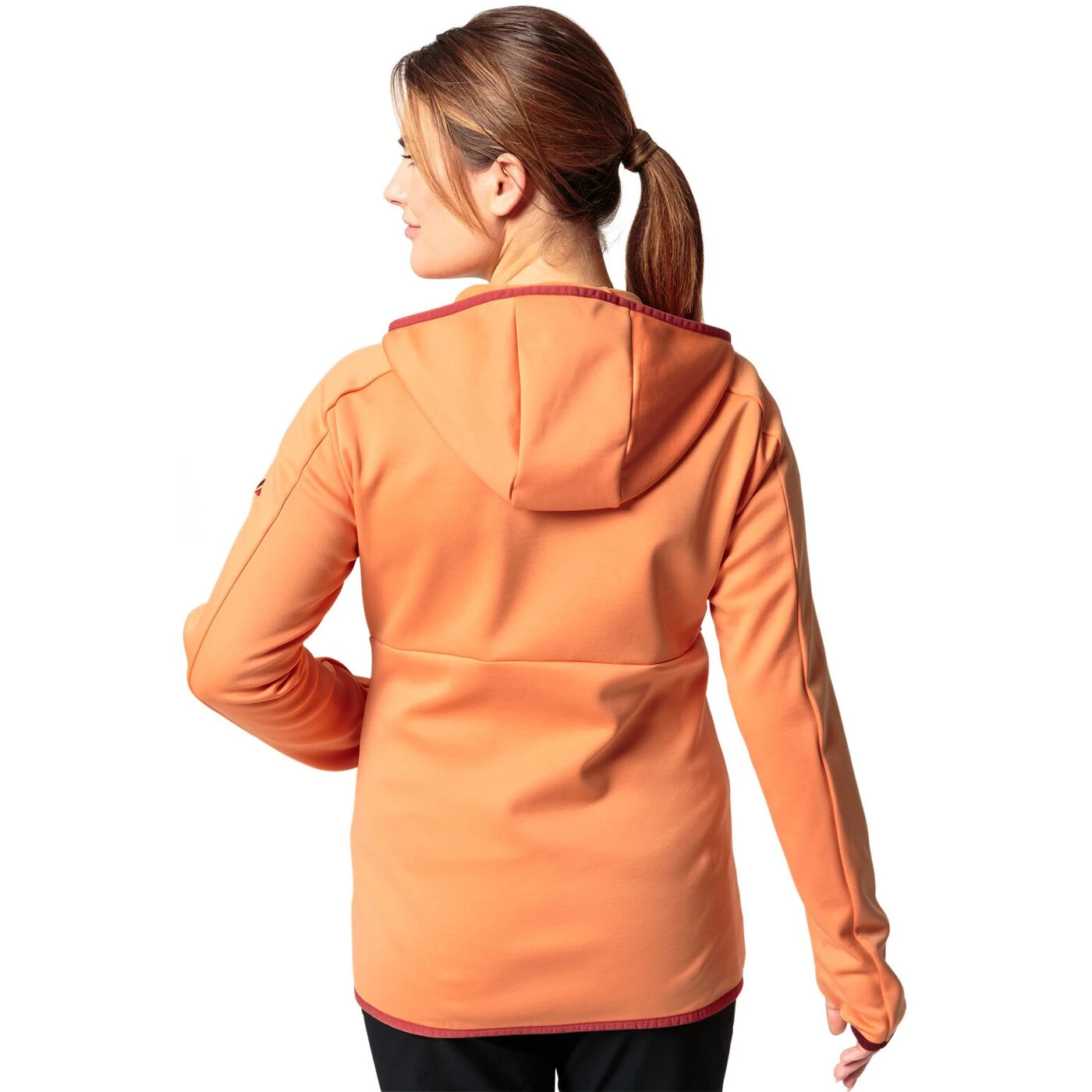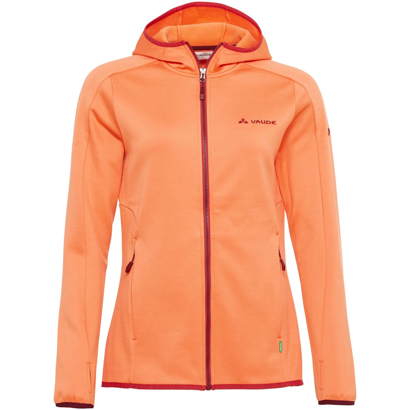 - Damen Fleece Hoodie mit kuschliger Innenseite , mit Daumenschlaufen , bietet hohe Bewegungsfreiheit , überwiegend aus recyceltem Polyester hergestellt