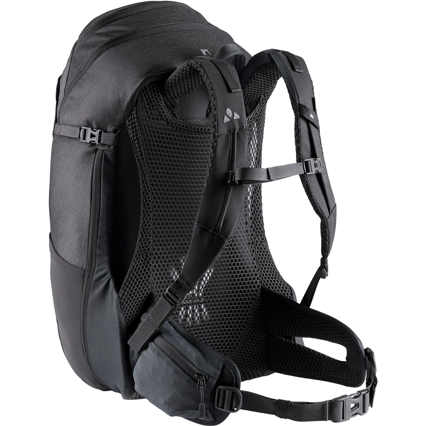 Kompakter, erweiterbarer Rucksack für Frauen – der Women’s Tacora 26+3 bietet Platz für alles, was auf der Wanderung oder im Stadtalltag dabei sein soll. Dieser umfangreich ausgestattete Allrounder ist ein echtes Organisationstalent: Er verfügt über eine praktische Fächeraufteilung mit Kartentasche und Handy-Einschubfach. Accessoires und Trinkflaschen können griffbereit in den seitlichen Netztaschen untergebracht werden – und falls es mal mehr wird, bietet die Volumenerweiterung mittels Reißverschluss ruckzuck 3l zusätzlichen Stauraum. Die gepolsterten Schultergurte wurden auf die Ergonomie der Frau angepasst – somit sitzt der Rucksack perfekt ohne einzuengen. Das komfortable Aeroflex 3D-Tragesystem hält den Women’s Tacora 26+3 wackelfrei auf Distanz und sorgt für eine angenehme Rückenbelüftung bei schweißtreibenden Aufstiegen. Die Wanderstöcke können im Bedarfsfall mit wenigen Handgriffen am Rucksack befestigt werden. Eine integrierte Regenhülle hält nicht nur die Nässe ab – sie kann dank der Trageschlaufen obendrein auch als Einkaufstasche oder Schmutzwäschebeutel verwendet werden. Das VAUDE Green Shape-Label steht für ein umweltfreundliches, funktionelles Produkt aus nachhaltigen und bluesign®-zertifizierten Materialien.