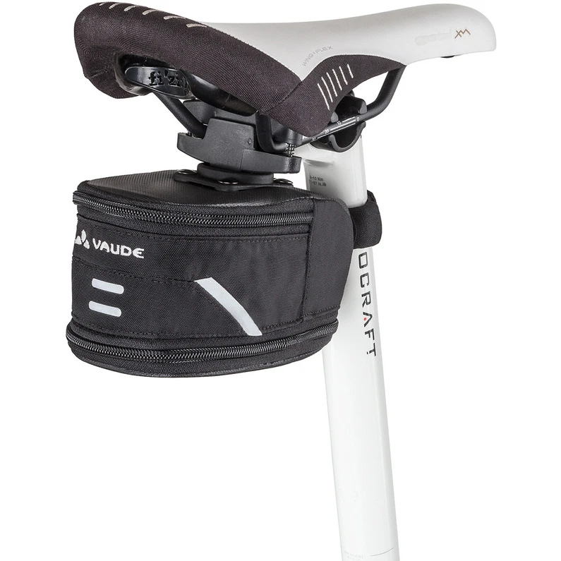 Die Tool M Satteltasche von Vaude ist eine funktionelle Konstruktion aus umweltfreundlich produzierten Materialien. Das Fassungsvermögen der kompakten Tasche lässt sich bei Bedarf durch ein Balgsystem erweitern und kann neben einem Notfallset samt Wechselschlauch auch leichte Verpflegung, wie einen Energieriegel aufnehmen. Für ausreichende Stabilität und komfortables Ein- und Aushängen sorgt der clevere Twist-Adapter, eine robuste und schnell zu bedienende Dreharretierung.