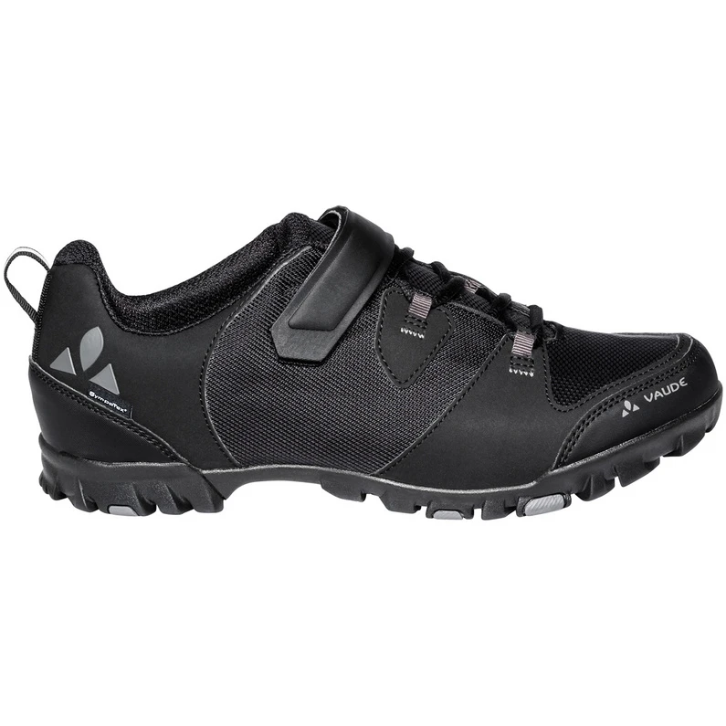 Die Vaude TVL Pavei STX sind leichte Allround-Radschuhe und bieten sich für Trail-Einsteiger, Genussradler und Alltags-Bikependler an. Das „TVL“ Kürzel im Namen steht für „Travel“ (Reisen) und entsprechend stattet Vaude den Radschuh mit einer etwas flexibleren Sohle für mehr Tragekomfort auf längeren Touren und beim Gehen aus. Die Abkürzung „STX“ weist auf die wasserdichte und atmungsaktive Sympatex® Membran hin, die den Bikeschuh optimal auf jedes Wetter vorbereitet.Die Sohle verfügt über einen durchgehenden Nylon-Stabilisator für eine gute Kraftübertragung auf das Pedal. Für mehr Effizienz auf dem Bike können dank optimaler Kompatibilität mit SPD-Systemen auch Klickpedale zum Einsatz kommen. Mit der durch Schnürung und Klettriemen sehr gut regulierbaren Passform lässt sich ein rutschfreier Sitz und das gewünschte Maß an Kontrolle erzeugen.Weitere Pluspunkte des TVL Pavei STX wie das atmungsaktive, gezielt verstärkte Obermaterial, die griffige, leicht profilierte Gummilaufsohle oder die komfortable Ortholite® Einlegesohle mit verstärkter Pedalzone unterstreichen das durchdachte Konzept des universellen Allwetter-Freizeit-Bikeschuhs.